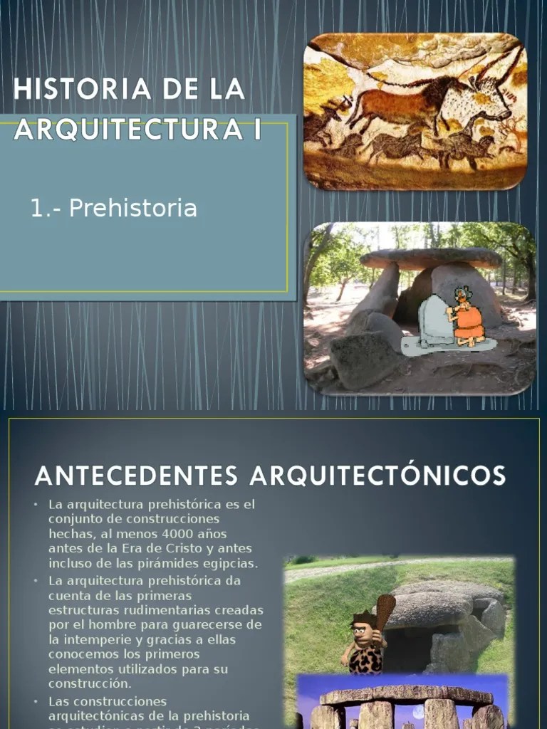 25.04.2014 · historia de la estructuras la estructura de la arquitectura prehistòrica historia de la arquitectura breve historia de las estructuras durante la prehistoria surgen los primeros monumentos y el hombre comienza a dominar la técnica de trabajar la piedra. Por esto, el estudio de la arquitectura no solo es saber cuáles fueron las primeras estructuras que existieron y que cultura las hizo, sino que gracias a los primeros asentamientos humanos podemos comprender sus costumbres, religión, ideología, y todos los aspectos que en conjunto determinan a una sociedad. Cuando el hombre era nómada, sus refugios eran temporales y móviles. 25.04.2014 · historia de la estructuras la estructura de la arquitectura prehistòrica historia de la arquitectura breve historia de las estructuras durante la prehistoria surgen los primeros monumentos y el hombre comienza a dominar la técnica de trabajar la piedra. Todo amante de la arqueología y la antropología sabrá muy bien cuán fascinantes resultan las construcciones y creaciones arquitectónicas del ser humano en la prehistoria.